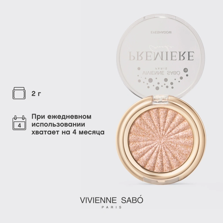 Сияющие тени PREMIERE GRANDE от VIVIENNE SABÓ мягко подчеркивают глубину взгляда и придают ему загадочность. Представь: бархатный занавес медленно поднимается, и в лучах прожекторов появляется она — танцовщица кабаре, чей взгляд пленяет, а движения очаровывают. Ее образ — воплощение силы и грации, она становится вдохновением для миллионов, кто стремится к безупречности. На ее веках — нежное сияние розового золота, словно блеск софитов в закулисье, вызывающее восхищение и желание разгадать тайну ее чарующей красоты. Круглая упаковка теней PREMIERE GRANDE, словно старинный медальон, хранит в себе секрет парижского очарования. Прозрачная крышка позволяет заглянуть в мир нежного мерцания, а золотое основание напоминает о роскоши, которая витает вокруг каждой танцовщицы кабаре.
