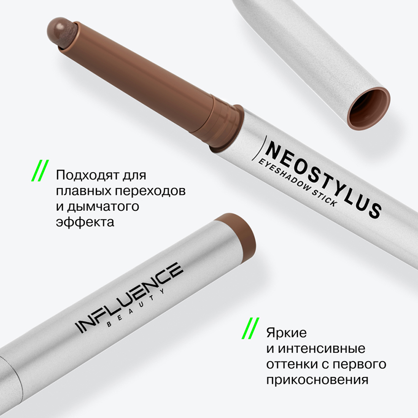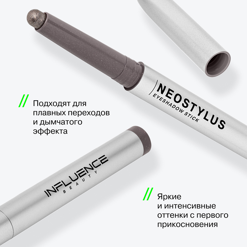NEOSTYLUS от INFLUENCE BEAUTY — тени в стике, которые изменят ваши представления о стойкости и комфорте. Они, подобно стилусу, создают точный и выверенный образ. Стик позволяет контролировать нанесение для желаемого эффекта: от дымки до насыщенного графичного макияжа глаз. Благодаря уникальной технологии LongFusion текстура теней невероятно легкая и безупречно стойкая. Формула сочетает чистые пигменты и специальные ингредиенты, надежно фиксирующие цвет, и обеспечивает идеальное слияние пигментов с кожей. Продукт создает устойчивое покрытие, которое не тускнеет и не стирается при любых внешних факторах. Тени с мягкой кремовой текстурой легко наносятся и растушевываются, поэтому ими можно сделать плавные переходы и дымчатый эффект на веках. В палитре NEOSTYLUS восемь универсальных тонов: четыре сияющих, в том числе голубо-розовый дуохром, и четыре розово-коричневых матовых. Каждый стик помещен в футуристичный серебряный футляр с функциональным цветоуказателем, который поможет легко выбрать нужный оттенок.