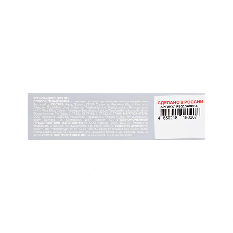 Жидкие сияющие тени для век RUSSIAN BEAUTY GURU «СОКРОВИЩА РОССИИ» — это коллекция из стойких теней со сверкающими оттенками для праздничного макияжа. Они имеют тающую гелевую текстуру, которая легко наносится, растушевывается и быстро высыхает, обеспечивая плотное сияющее покрытие с первого слоя без базы, сохраняя яркость и мерцание до 12 часов без осыпания или скатывания.