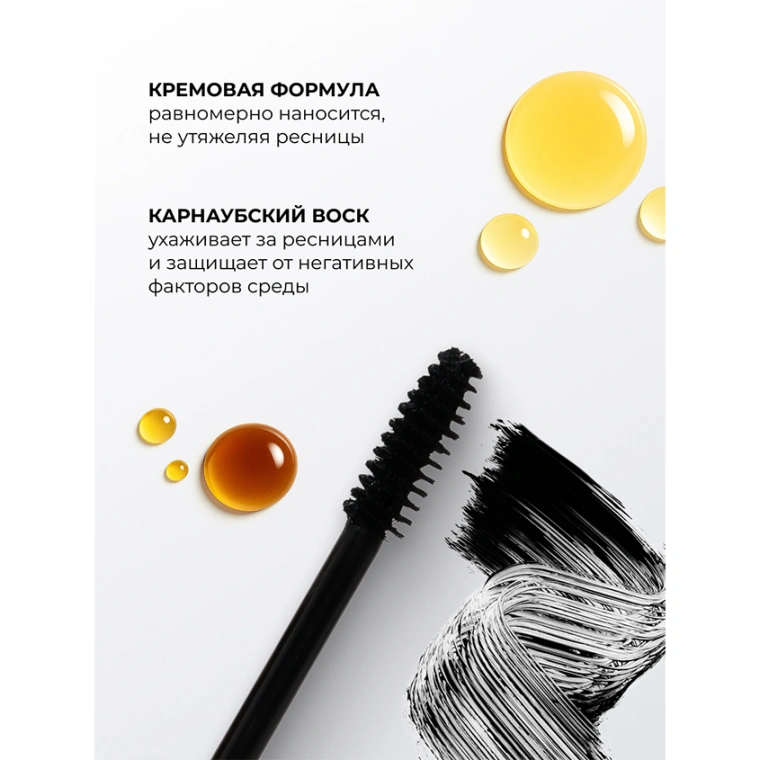 Специальная водостойкая формула обеспечивает стойкость в течение всего дня: тушь не осыпается, не размазывается и устойчива к влаге, слезам и повышенной влажности. Удобная щёточка прокрашивает ресницы от корней до кончиков, визуально увеличивая их объём и подчёркивая глубину взгляда.