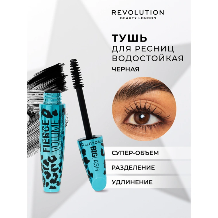Тушь для ресниц `REVOLUTION` BIG LASH FIERCE VOLUME WATERPROOF водостойкая тон 01 Black