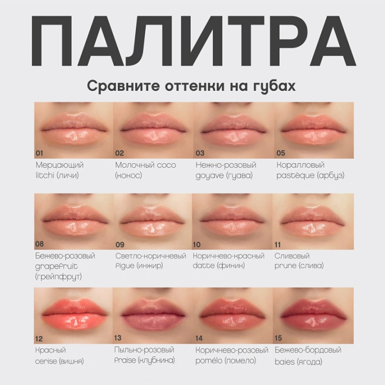 Экстремально глянцевый и сочный блеск для губ! 12 роскошных оттенков с суперглянцевым влажным финишем и головокружительным ягодным ароматом создают эффект объемных сексуальных губ. Нежная желейно-масляная текстура блеска прекрасно распределяется благодаря большому пушистому аппликатору. Формула обогащена маслами макадамии и жожоба, которые смягчают, питают и увлажняют нежную кожу губ. Устоять просто невозможно! Совет: Наносите блеск от середины губ к краям. Для того, чтобы добавить губам объём без использования контурного карандаша, нанесите блеск, немного заходя за границы верхней губы. Блеск можно использовать отдельно или наносить поверх помады. Чтобы получить необычный оттенок, попробуйте нанести блеск на помаду контрастного оттенка.