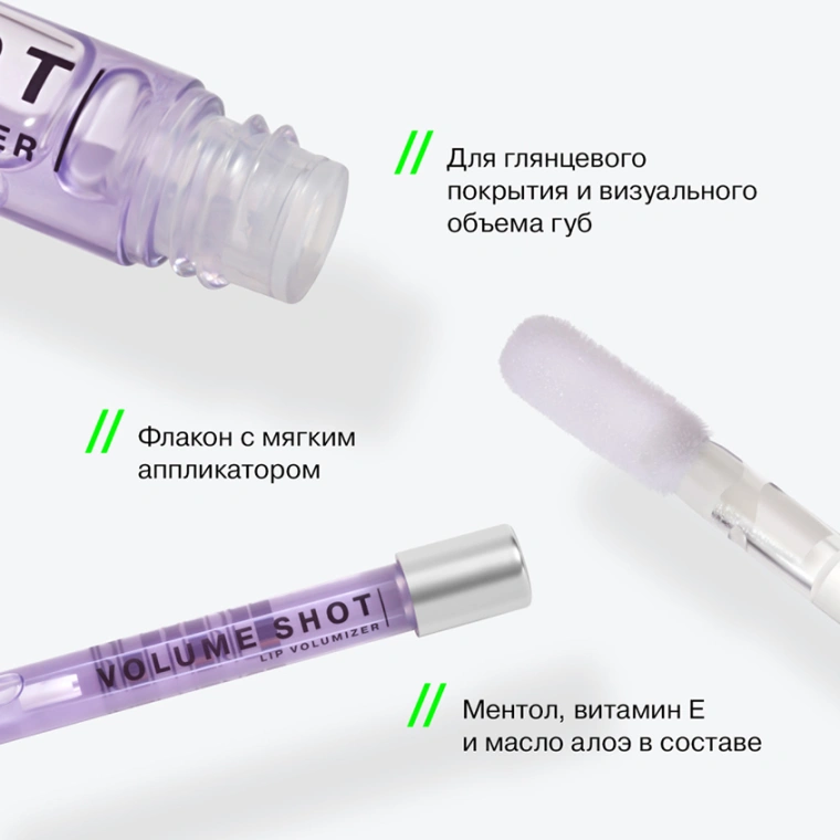 Суперглянцевый блеск VOLUME SHOT от INFLUENCE BEAUTY с легкой нелипкой текстурой создан на основе технологии PLUMPINIZER. Ментол в составе стимулирует микроциркуляцию крови и способствует визуальному увеличению объема губ. Витамин Е и масло алоэ ухаживают за кожей, одновременно увлажняя и защищая ее. Для придания губам большего объема наносите блеск VOLUME SHOT на маску для губ VOLUME DOSE от INFLUENCE BEAUTY. Для максимального глянцевого и плампинг-эффекта наносите блеск в два слоя. Избегайте попадания средства в рот или на слизистую глаз. В ассортименте 2 тона. Продукция не тестируется на животных.
