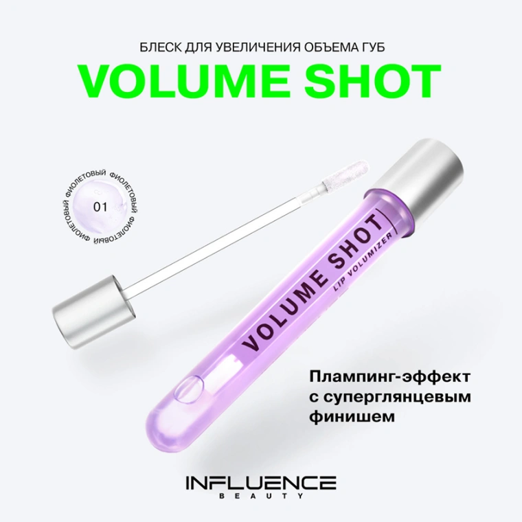 Блеск для губ `INFLUENCE BEAUTY` LIP VOLUMIZER для увеличения объема тон 01 полупрозрачный фиолетовый