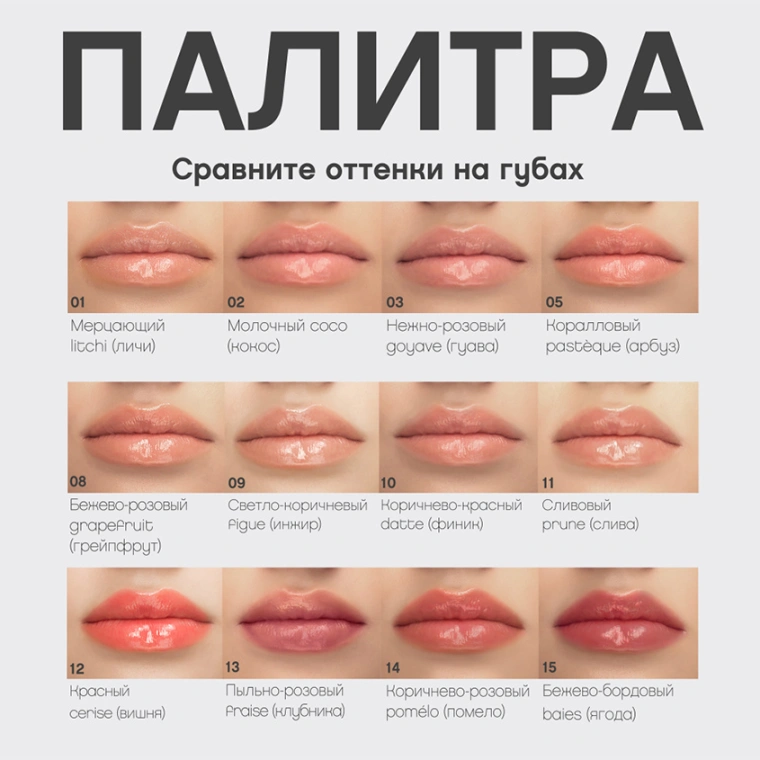 Попробуй новые оттенки блеска LE GRAND VOLUME с потрясающим ягодным ароматом. Нежная желейно-масляная текстура блеска легко наносится, прекрасно распределяется по губам и дает роскошный глянцевый финиш. А формула с маслами макадамии и жожоба ухаживает за кожей губ, смягчая, питая и увлажняя ее.