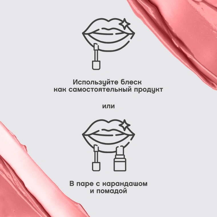 Блеск для губ можно использовать как самостоятельный продукт или в паре с карандашом и помадой. Для