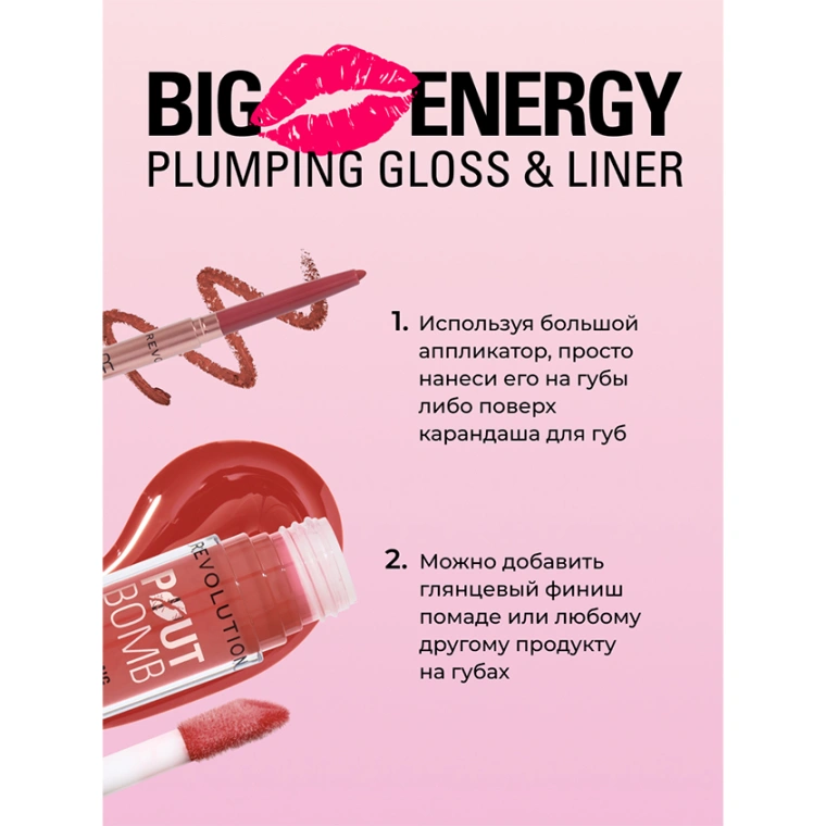 ПОГРУЗИСЬ В БУНТ СОЧНОСТИ! Блеск для губ POUT BOMB PLUMPING LIPGLOSS от MAKEUP REVOLUTION — это твой beauty-манифест против скучного макияжа! Смелый объём, освежающий ментоловый эффект и оттенки, полные характера — с этим блеском твои губы всегда в центре внимания. Готова к провокации? Тогда добавь дерзкий глянец к своему образу! ПРОБУДИ СВОЮ ВНУТРЕННЮЮ БУНТАРКУ • Сочные полупрозрачные оттенки — от естественного до вызывающе яркого • Эффект увеличения губ — будь громкой без слов • Глянцевое сияние — как вызов обыденности ЗА ЧТО ТЫ ПОЛЮБИШЬ POUT BOMB? • Ментоловое покалывание — мгновенный эффект объёма • Увлажняющая формула с витамином Е • Лёгкая, не липкая текстура — носить приятно целый день • Универсальность — носи соло или поверх любимой помады • Новый аромат сладкой ванили с добавлением полезных компонентов для питания и увлажнения губ • В линейке представлены блески с глянцевым и шиммерным эффектом • Блёстки в шиммерных оттенках не ощущаются на губах ОПРОБОВАН И ПРОТЕСТИРОВАН! Эта невероятная новая формула для создания объема подтвердила свою эффективность • 81%* согласились с тем, что губы выглядят заметно объемнее • 81%* согласились с тем, что их губы выглядят заметно больше ПРЕДСТАВЛЕН В СЕМИ ОТТЕНКАХ: • Jelly Berry Mauve – Прозрачный светло-лиловый оттенок в теплых тонах • Cherry Sheer Red – Прозрачный яркий вишнево-красный цвет • Milky Sheer Holo – Прозрачный переливающийся молочно-телесный оттенок • Rosewood Rose Pink – Насыщенный розовый цвет • Wild Mauve Pink – Теплый розовато-лиловый оттенок • Espresso Cool – Насыщенный коричневый цвет с холодным оттенком • Melba Warm Peach – Приглушенно оранжевый оттенок Revolution не используют компоненты животного происхождения и те, что тестируются на животных ни на одном из этапов производства. Создатели бренда убеждены, что все существа имеют право на жизнь и свободу. Веганский продукт. *На основе отзывов 59 пользователей сразу после использования продукта в ходе слепого тестирования в 2024 году.