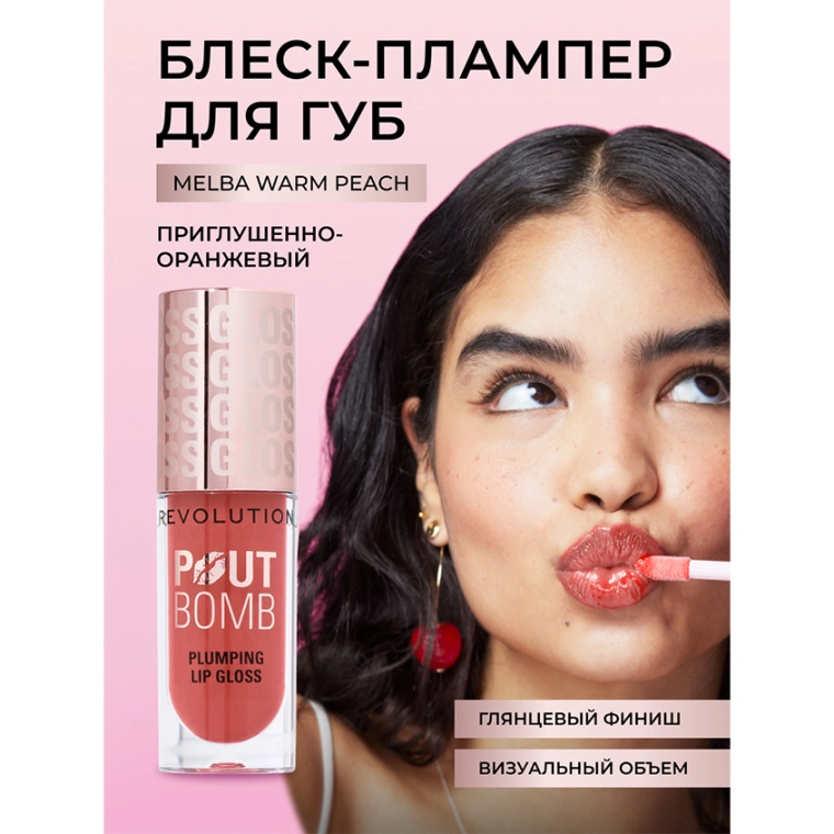 Блеск для губ `REVOLUTION` POUT BOMB с эффектом объема тон Melba warm peach