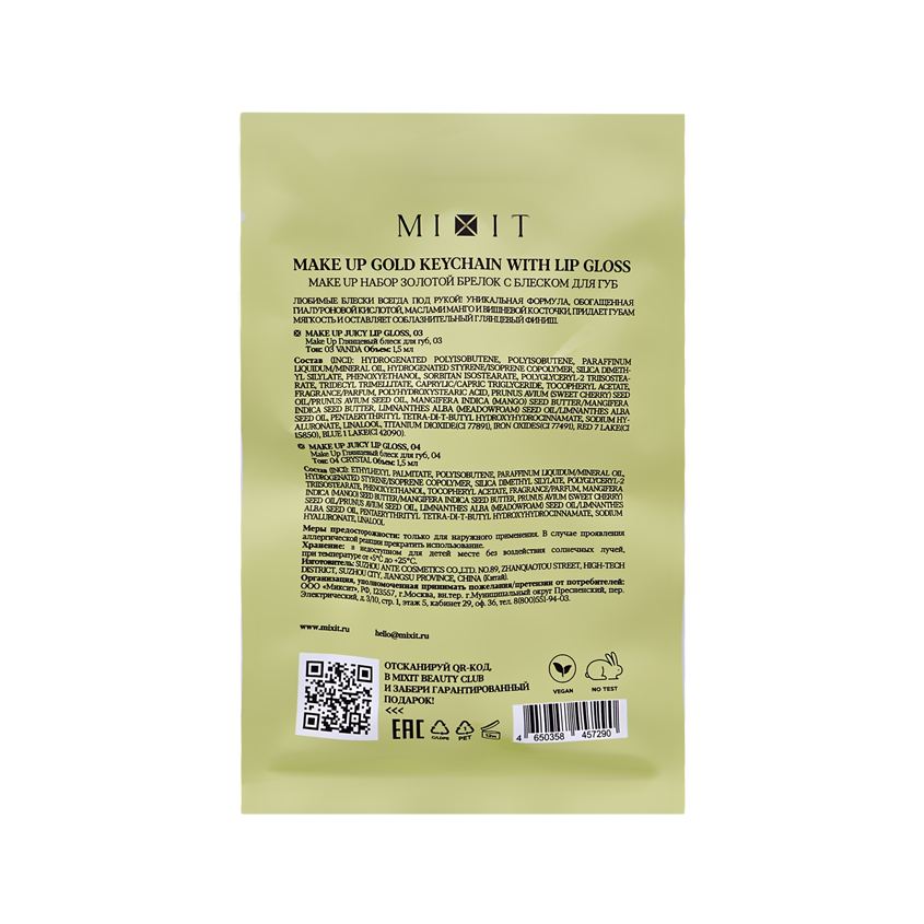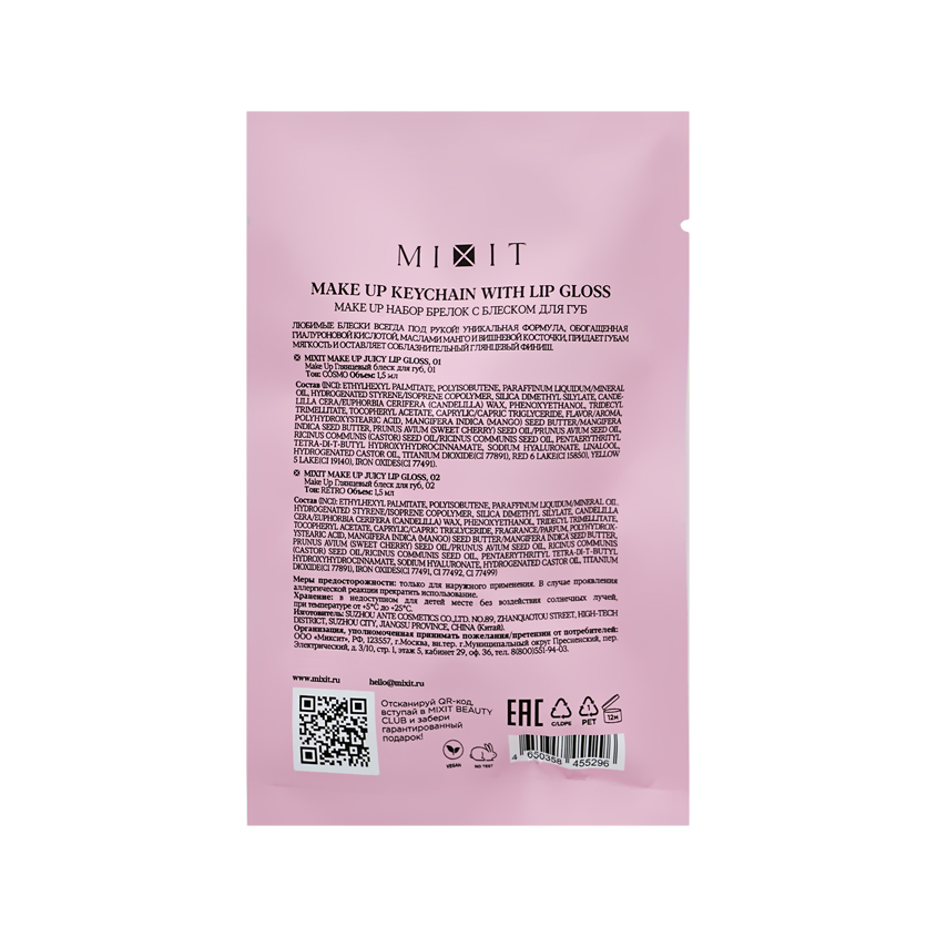Набор блесков для губ `MIXIT` OH, MY JUICY LIPS! с брелоком тон Серебристый