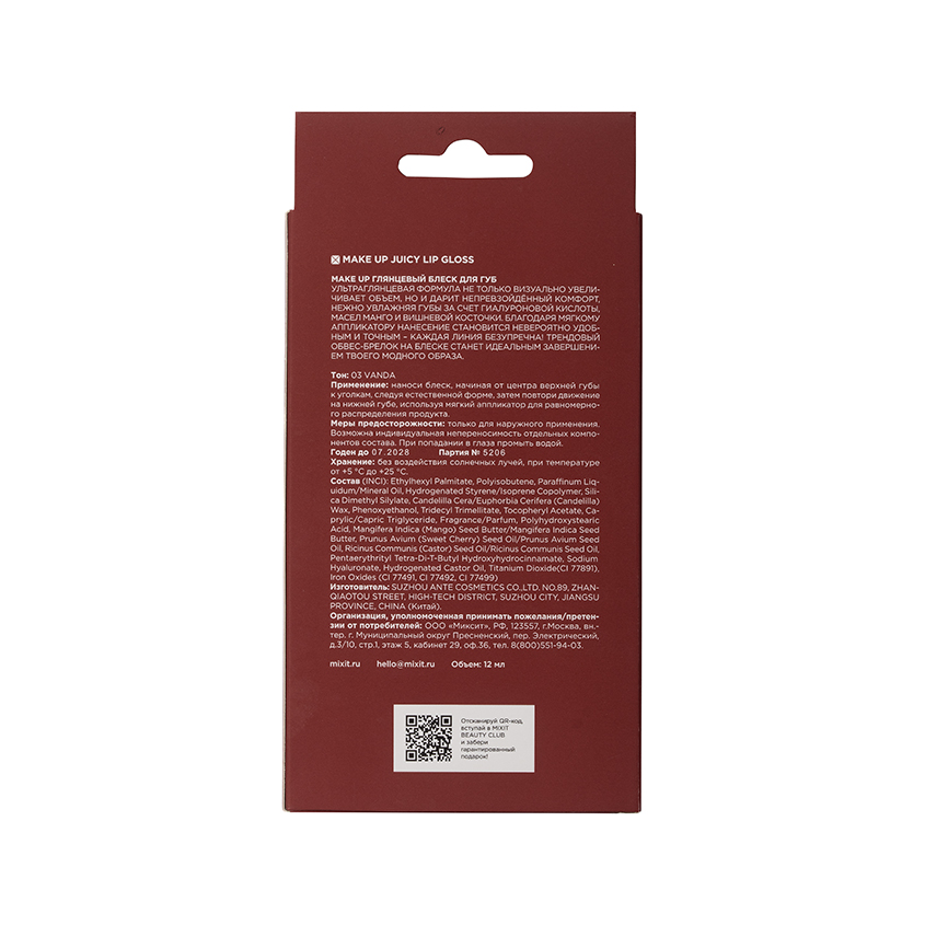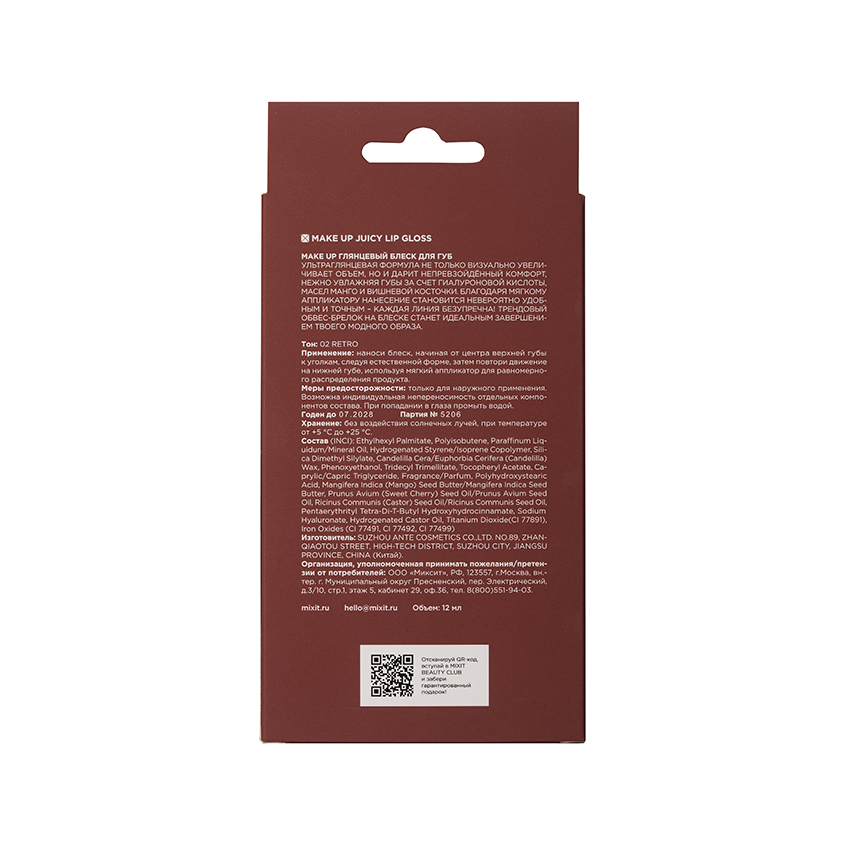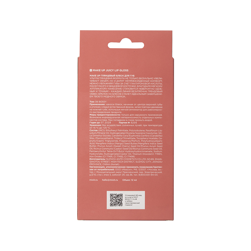 "Ультраглянцевая формула не только визуально увеличивает объем, но и дарит непревзойдённый комфорт, нежно увлажняя губы за счет гиалуроновой кислотой, масел манго и вишневой косточки. Благодаря мягкому аппликатору нанесение становится невероятно удобным и точным – каждая линия безупречна!