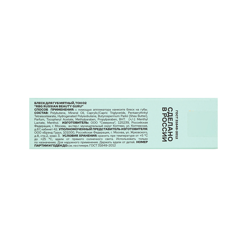 Блеск для губ `RBG` BY НАТАША РАКОЧ тон 02 Мятный