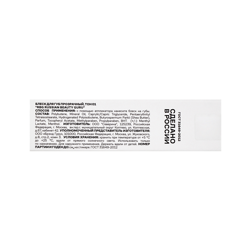Блеск для губ `RUSSIAN BEAUTY GURU` BY НАТАША РАКОЧ тон 01 Прозрачный