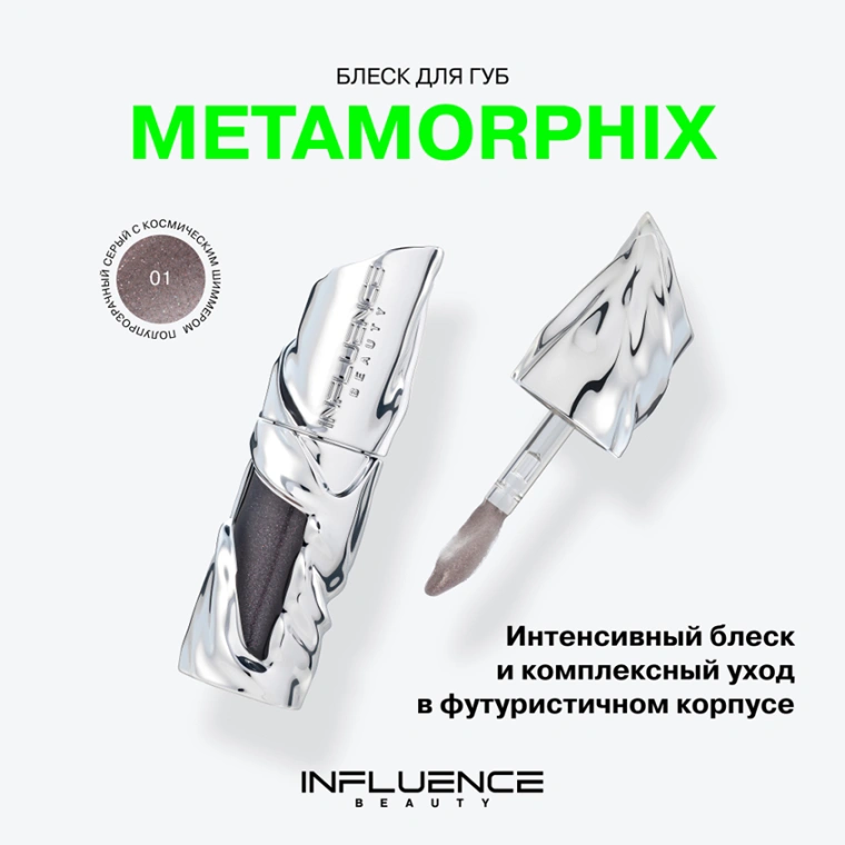 Блеск для губ `INFLUENCE BEAUTY` METAMORPHIX увлажняющий тон 01 Kryptonite