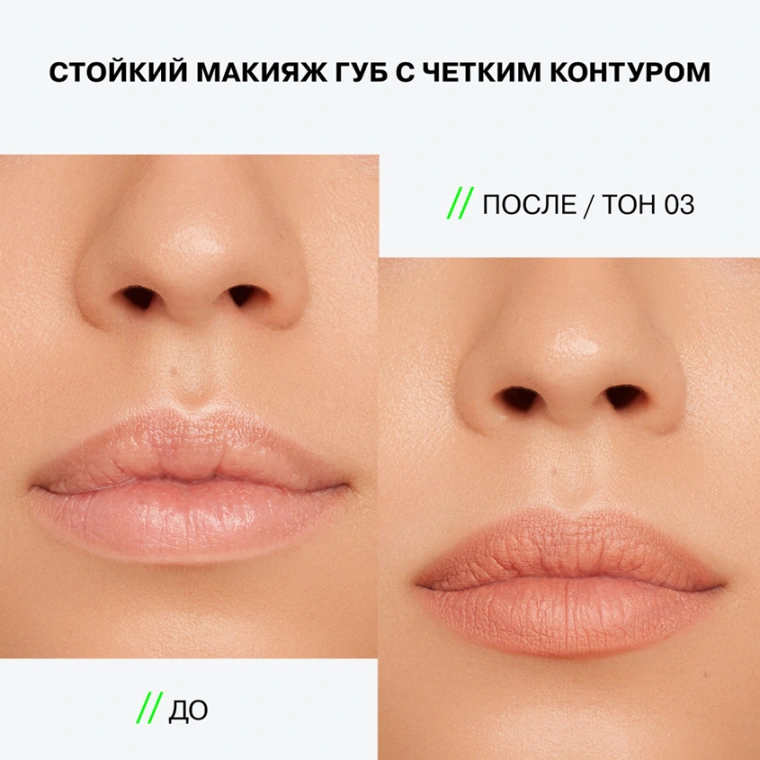 Перед нанесением стойкого матового карандаша обязательно увлажните губы бальзамом LIPSKILL или