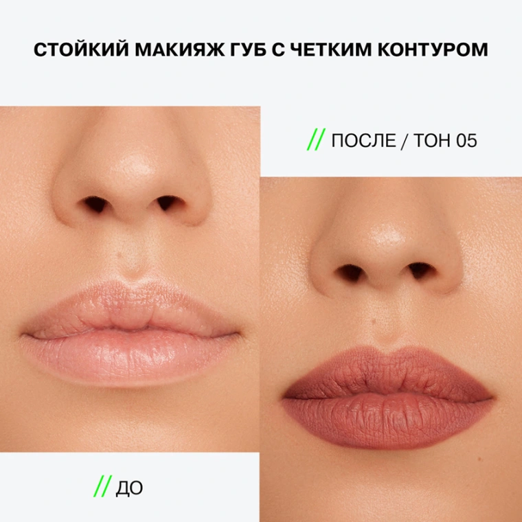 Перед нанесением стойкого матового карандаша обязательно увлажните губы бальзамом LIPSKILL или