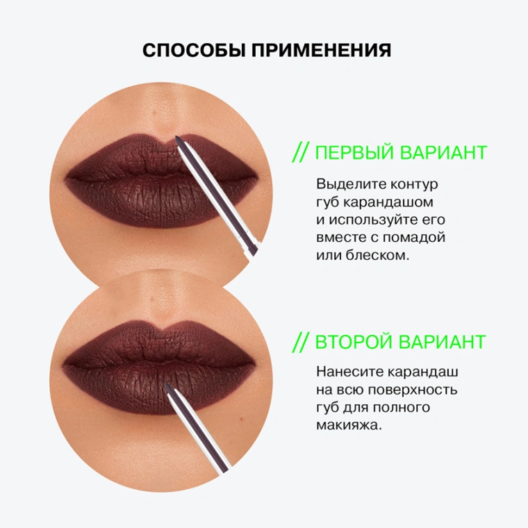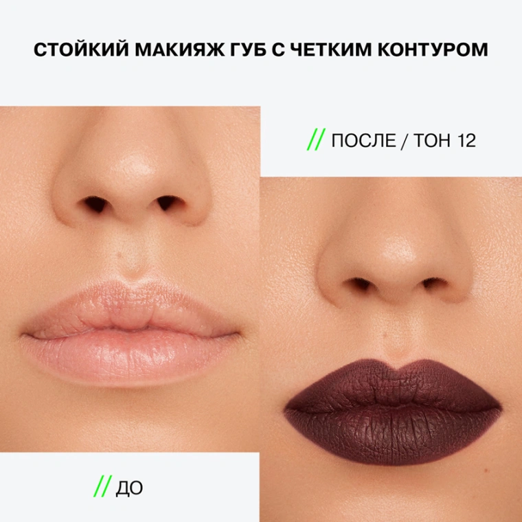 Перед нанесением стойкого матового карандаша обязательно увлажните губы бальзамом LIPSKILL или
