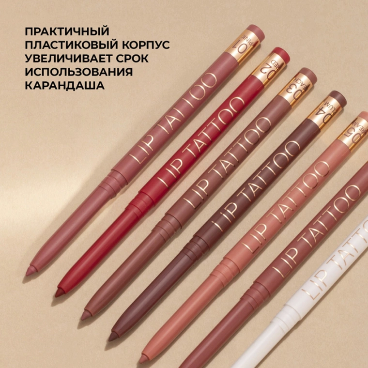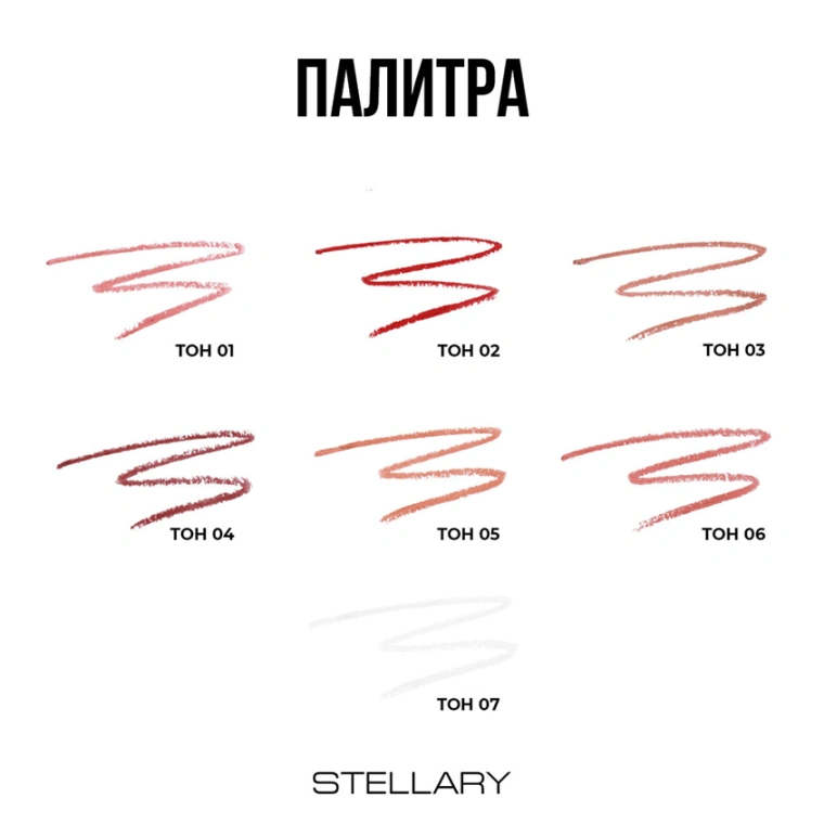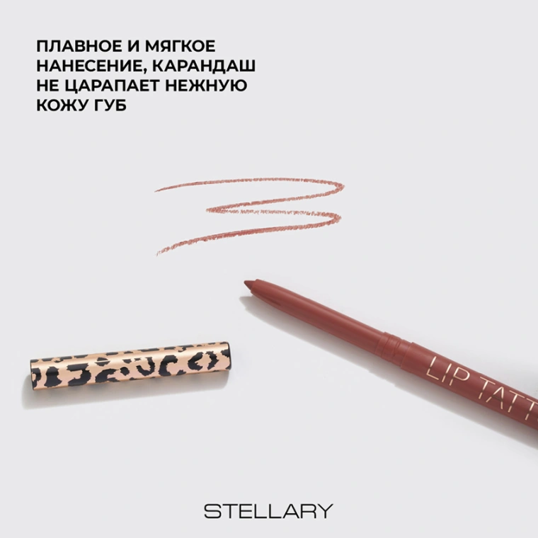 Автоматический карандаш для губ Stellary для насыщенного цвета и безупречной линии контура. С ним вы можете быть уверены в стойкости своего макияжа и четкости линии губ в течение всего дня. Легкая невесомая текстура равномерно распределяется, фиксируется и обеспечивает стойкий матовый эффект. У карандаша тонкий грифель, благодаря которому он наносится точно и аккуратно. Благодаря выдвижному механизму карандаш не требует дополнительного затачивания. В ассортименте семь оттенков: яркие и насыщенные тона с 01 по 06 и прозрачный 07.