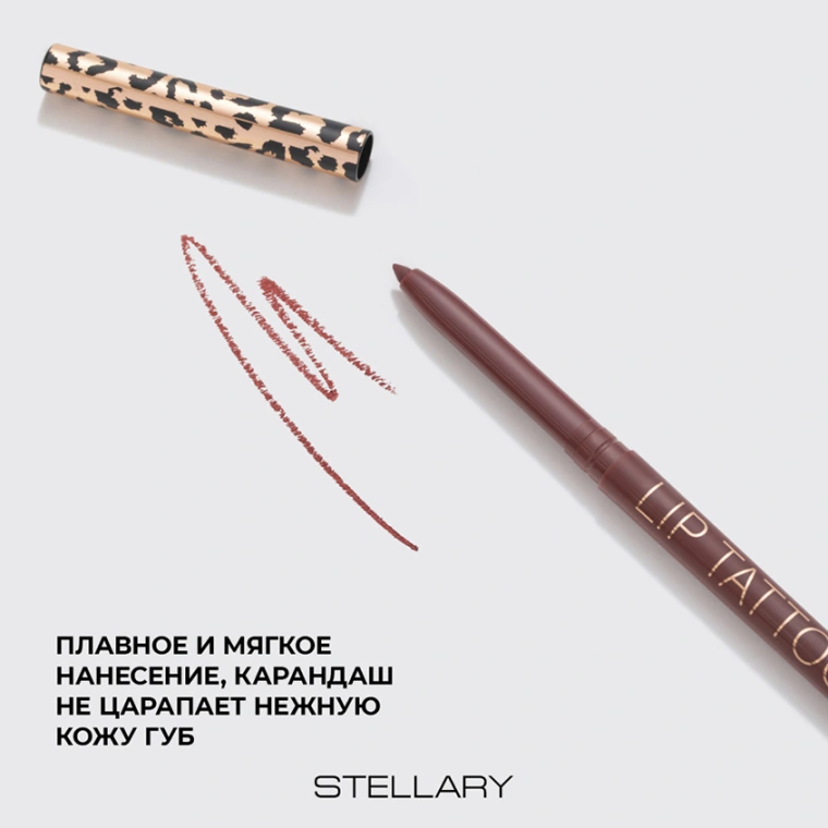 Автоматический карандаш для губ Stellary для насыщенного цвета и безупречной линии контура. С ним вы можете быть уверены в стойкости своего макияжа и четкости линии губ в течение всего дня. Легкая невесомая текстура равномерно распределяется, фиксируется и обеспечивает стойкий матовый эффект. У карандаша тонкий грифель, благодаря которому он наносится точно и аккуратно. Благодаря выдвижному механизму карандаш не требует дополнительного затачивания. В ассортименте семь оттенков: яркие и насыщенные тона с 01 по 06 и прозрачный 07.