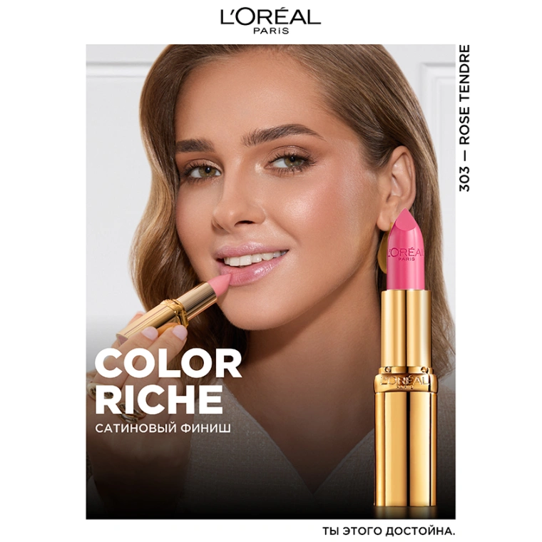 Color Riche – культовая помада L'Oréal Paris с 1985 года. Color Riche – сочетание насыщенных пигментов цвета и драгоценных масел в одном флаконе. Сатиновый финиш, скользящее нанесение, богатая палитра оттенков. 75% ухаживающих компонентов в составе. Экстракты камелии и лотоса, масло арганы и жожоба глубоко питают и увлажняют нежную кожу губ. Больше, чем цвет. Роскошь цвета и ухода за вашими губами.