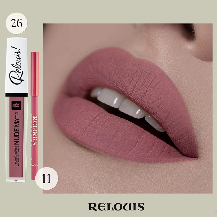 Помада для губ `RELOUIS` NUDE MATTE тон 26 жидкая матовая