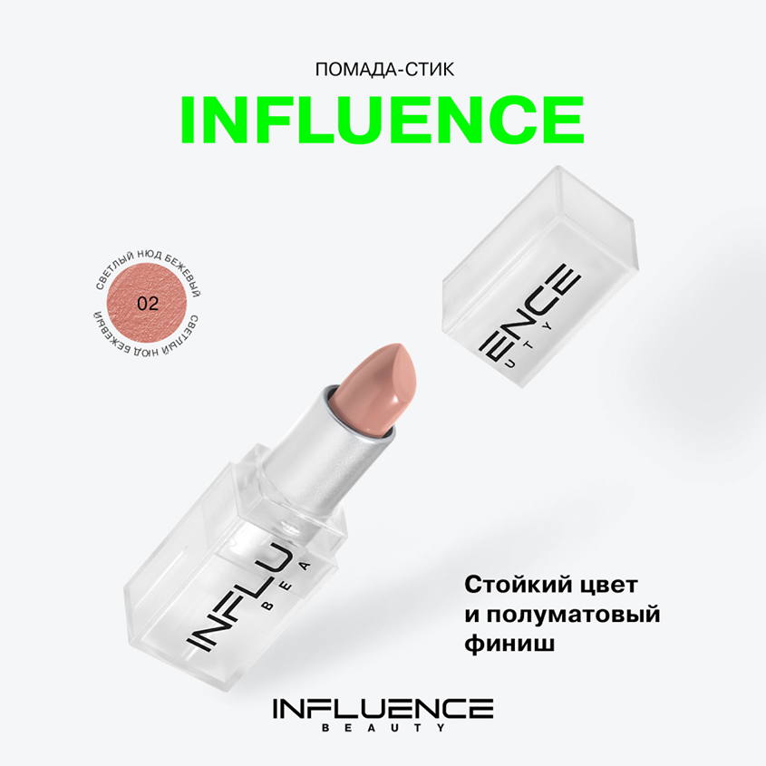 Помада для губ `INFLUENCE BEAUTY` INFLUENCE LIPSTICK стик тон 02