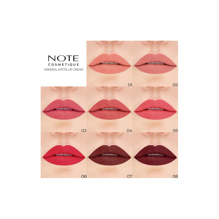 Настоящая жемчужина NOTE - минеральный матовый крем для губ. Сокровище для истинных ценителей уникальных и неповторимых продуктов! В мягкой тубе с бархатистым аппликатором заключено наслаждение в чистом виде - неощутимый на губах матовый крем с уникальной стойкостью. Идеально сбалансированная палитра из восьми оттенков - от нежного нюда до умопомрачительного красного. Мягкая формула кремя позволяет добиться любой степени покрытия. Все возможно с MATTE LIP CREAM: одно прикосновение аппликатора - нежный оттенок, как лепесток розы, достойный восхищения! Два прикосновения - и глубина тона увлечет в пучины чувственных фантазий… Как настоящая драгоценность, MATTE LIP CREAM обладает непревзойденной стойкостью, он останется с Вами на весь день. Формула, обогащенная экстрактом кароллины и витамином Е и ценными минералами, подарит молодость, здоровье, увлажнит и заживит нежную кожу губ. С каждым днем кожа будет становиться более упругой и гладкой.