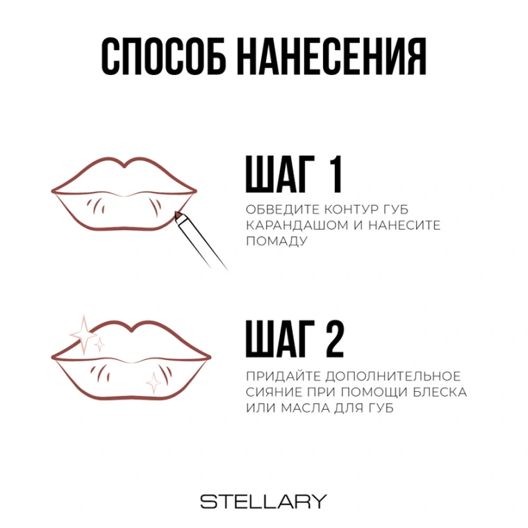 полупрозрачный, аккуратно вбивайте помаду подушечками пальцев.