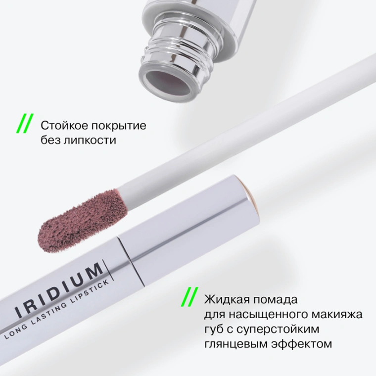 IRIDIUM — стойкая глянцевая помада от INFLUENCE BEAUTY в шести нюдовых и ярких оттенках. Ее главная особенность — непревзойденный глянцевый финиш, который остается даже после фиксации продукта на губах. Вдохновением для помады стал иридий — металл с уникальными свойствами, среди которых выделяют высокую прочность, устойчивость и долговечность. Подобно этому элементу, IRIDIUM с инновационными силиконами SILICLONG и современными микропигментами обладает высокой стойкостью, что позволяет ей оставаться на губах длительное время. Благодаря особому сцеплению продукта с поверхностью губ макияж сохранится при любых условиях, в том числе при контакте с водой и едой. Комфортная пигментированная текстура легко наносится, не растекается и стойко держится на губах без ощущения липкости и сухости. Помада упакована в глянцевый серебристый флакон с удобным плоским аппликатором, благодаря которому вы можете регулировать яркость и плотность покрытия. С IRIDIUM от INFLUENCE BEAUTY наслаждайтесь стойким макияжем с интенсивным глянцевым финишем на губах весь день.