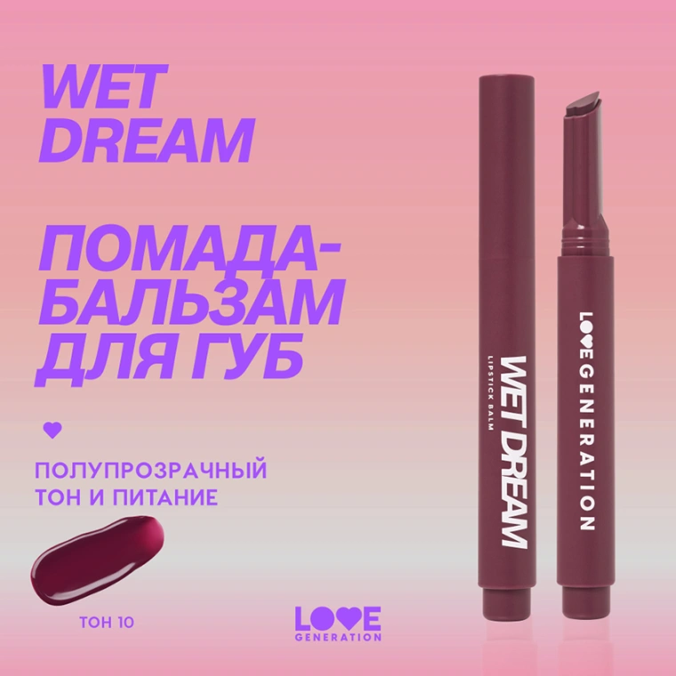 Помада-бальзам для губ `LOVE GENERATION` WET DREAM тон 10 Berry burst