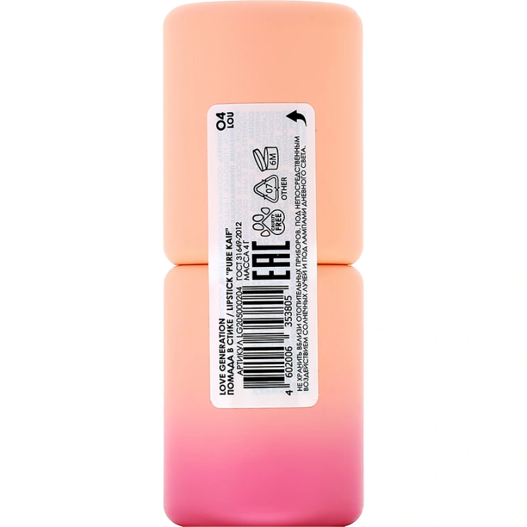 Помада для губ `LOVE GENERATION` PURE KAIF в стике тон 04 Lou