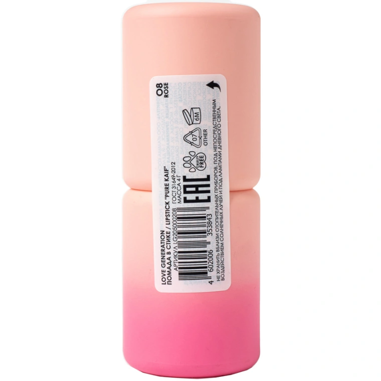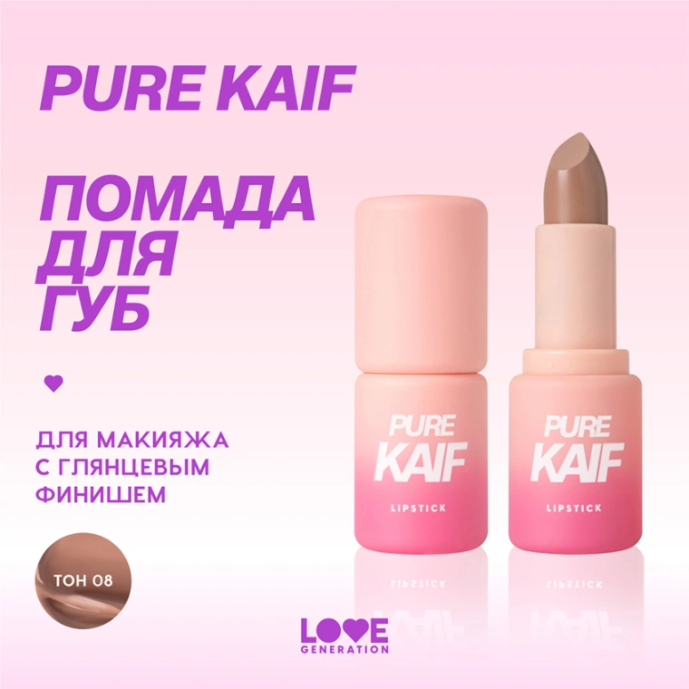 Помада для губ `LOVE GENERATION` PURE KAIF в стике тон 08 Rose
