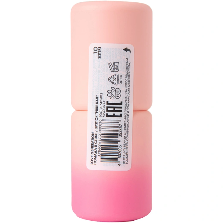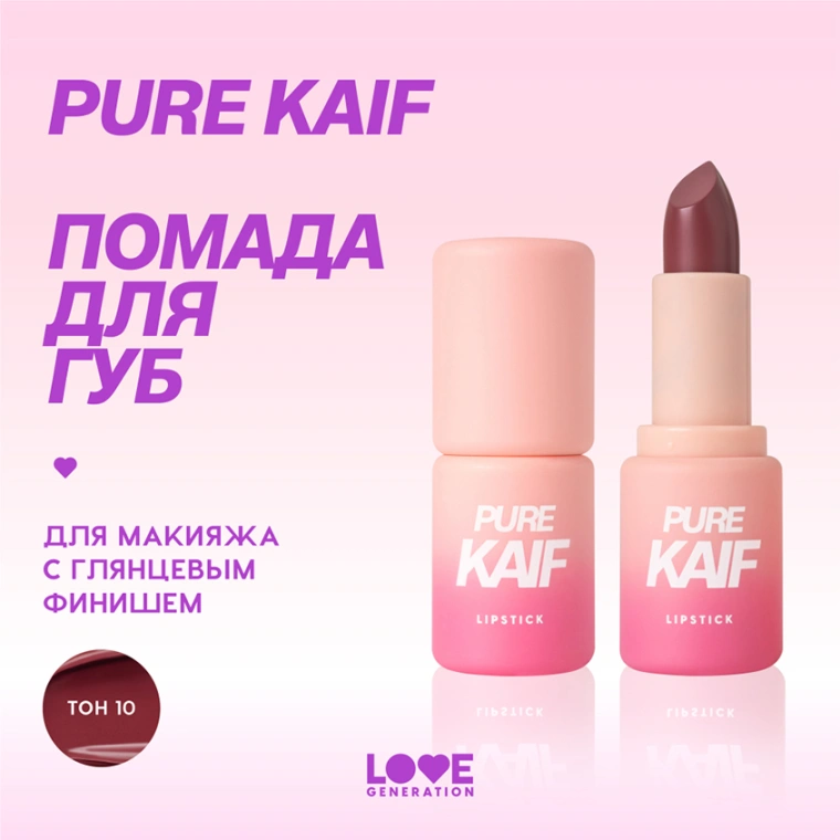 Помада для губ `LOVE GENERATION` PURE KAIF в стике тон 10 Sisters