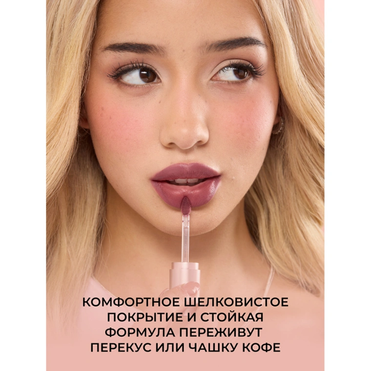 Для более чёткого контура можно предварительно использовать карандаш для губ. Дайте помаде высохнуть — и наслаждайтесь стойким матовым финишем.