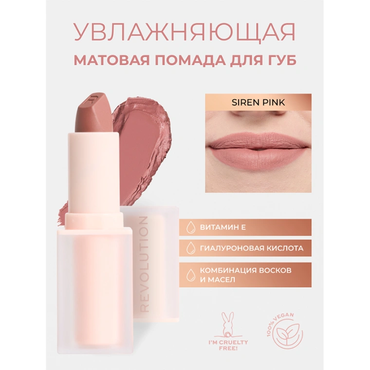 Сияй мягко, соблазняй уверенно — с LIP ALLURE от Revolution. LIP ALLURE SOFT SATIN LIPSTICK — сатиновая помада для губ с насыщенным цветом и шелковистой текстурой. Обеспечивает деликатное сияние без липкости, легко наносится и не сушит губы. Увлажняющая формула ухаживает за кожей губ и подходит как для дневного, так и для вечернего макияжа. Идеальный выбор для тех, кто хочет выразительный макияж с комфортом. Revolution не используют компоненты животного происхождения и те, что тестируются на животных ни на одном из этапов производства. Создатели бренда убеждены, что все существа имеют право на жизнь и свободу. Веганский продукт.