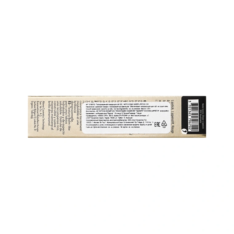 Помада для губ `NOTE` ICONIC SHEER LIPSTICK с полупрозрачным финишем тон 202 Soulmate