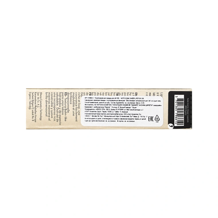 Помада для губ `NOTE` ICONIC SHEER LIPSTICK с полупрозрачным финишем тон 205 Mystic