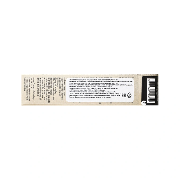 Помада для губ `NOTE` ICONIC SHEER LIPSTICK с полупрозрачным финишем тон 207 Idol