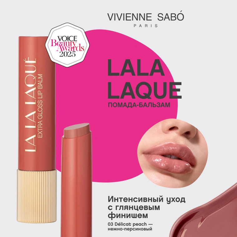 Помада-бальзам для губ `VIVIENNE SABO` LALA LAQUE глянцевая тон 03 Delicat peach