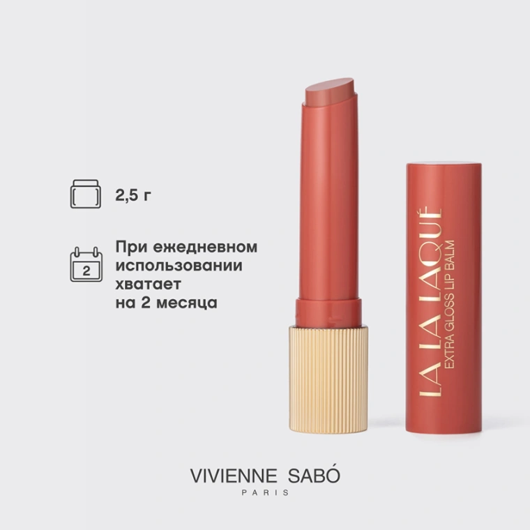 LA LA LAQUE от VIVIENNE SABÓ — глянцевая помада-бальзам с тающей текстурой для лаковых мягких губ. Представь себя в невероятном романтическом фильме от культового режиссера, где ты — главная героиня! Что ждет тебя завтра: головокружительный успех или встреча с любовью всей жизни? Что же предпочтешь ты? Точно знаем, что для своего кинофильма ты выберешь нежную помаду-бальзам для губ LA LA LAQUE с фруктовым ароматом личи. Ее уникальная специально разработанная мягкая тающая текстура на основе питательных масел позволяет достичь суперглянцевого эффекта и интенсивно увлажняет кожу. В палитре есть восемь тонов — от розовых до коричневых, которые подойдут на каждый день. LA LA LAQUE упакована в стик с ребристым золотистым основанием и крышкой в тон помады-бальзама. Механизм футляра позволяет выкрутить небольшое количество продукта для использования, что так важно для тающей текстуры. Обволакивающая помада-бальзам с полупрозрачным лаковым финишем сделает твои губы самыми притягательными для поцелуя в финальной сцене.