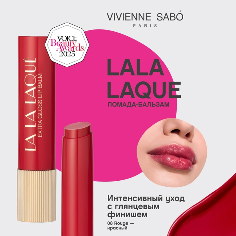 Помада-бальзам для губ `VIVIENNE SABO` LALA LAQUE глянцевая тон 08 Rouge