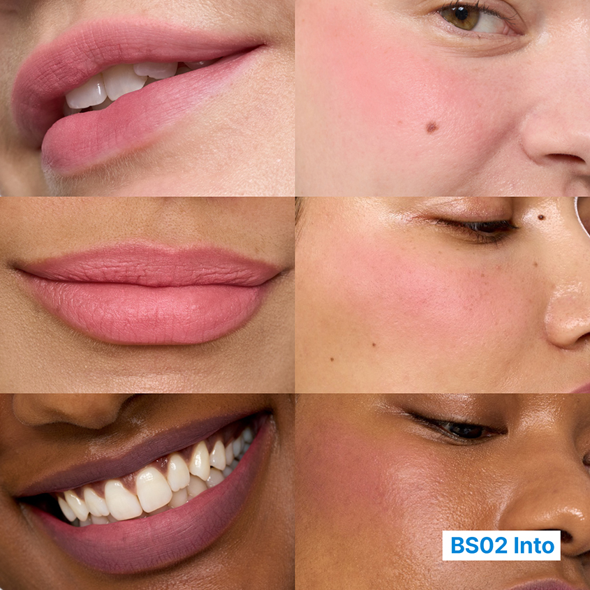 Нанесите средство на щёки, губы и веки, растушуйте пальцами или кистью.
