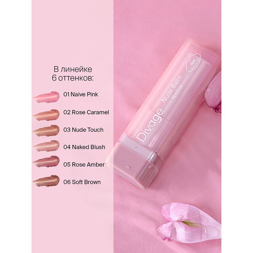 Помада-бальзам для губ `DIVAGE` NUDE BALM полупрозрачная тон 01 Naive pink