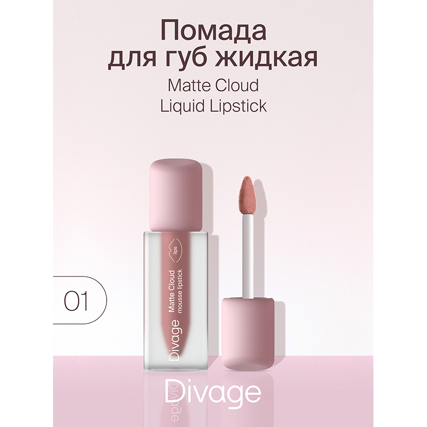 Помада для губ `DIVAGE` MATTE CLOUD жидкая матовая тон 01 Peach divine