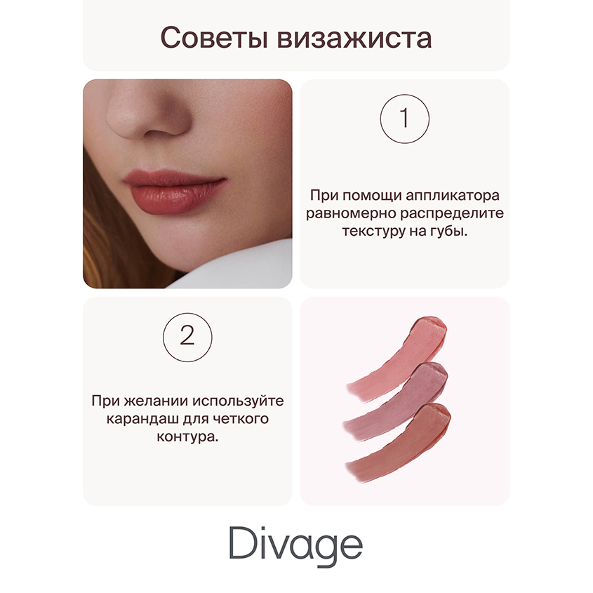 Международный бренд декоративной косметики и парфюмерии. Год основания – 1999. Динамично развивающийся бренд декоративной косметики и парфюмерии, созданный для тех, кто не боится проявить свою индивидуальность, чувствовать свою привлекательность и экспериментировать. Производство располагается в Италии, Германии, Франции, Польше, России и странах Азии. Ассортимент насчитывает более 900 SKU, включая аксессуары, парфюмерию и уход за кожей. Характер - яркий, динамичный, актуальный. Легкость, юность, стиль – синонимы продукции Divage. Уникальная комбинация креативной энергии и стиля, как доступная альтернатива продукции класса люкс.