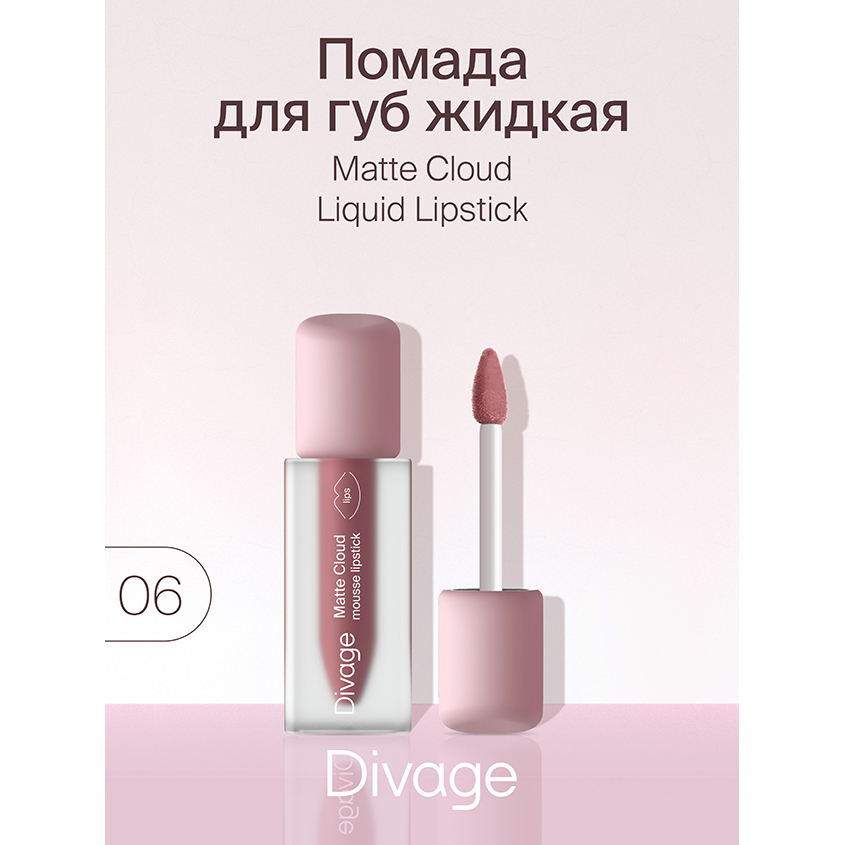 Помада для губ `DIVAGE` MATTE CLOUD жидкая матовая тон 06 All day rose