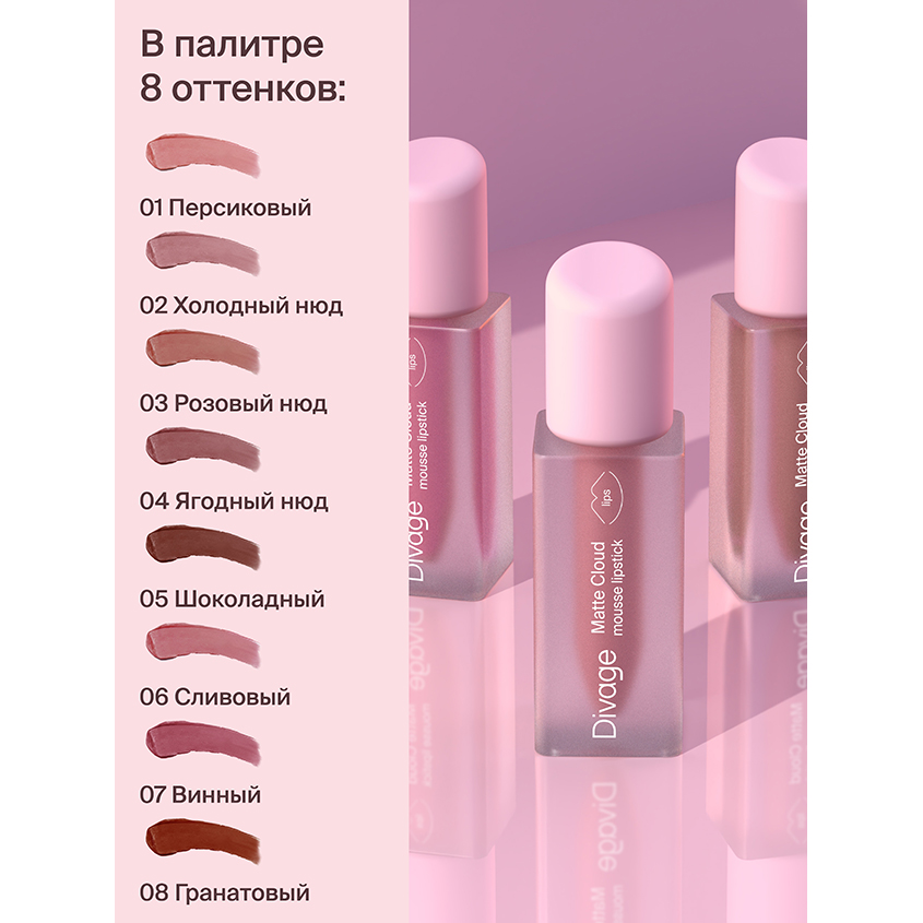 Помада для губ `DIVAGE` MATTE CLOUD жидкая матовая тон 02 Rose shadow