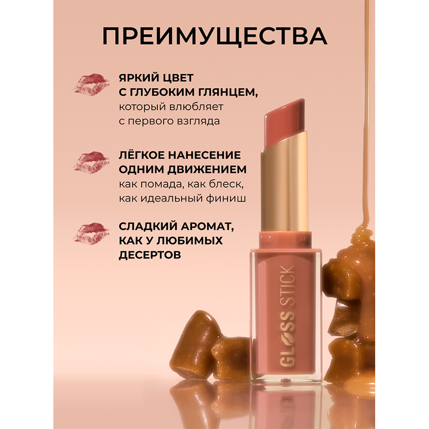 Помада-блеск для губ `REVOLUTION` GLOSS STICK с глянцевым финишем тон Shimmer toasted caramel