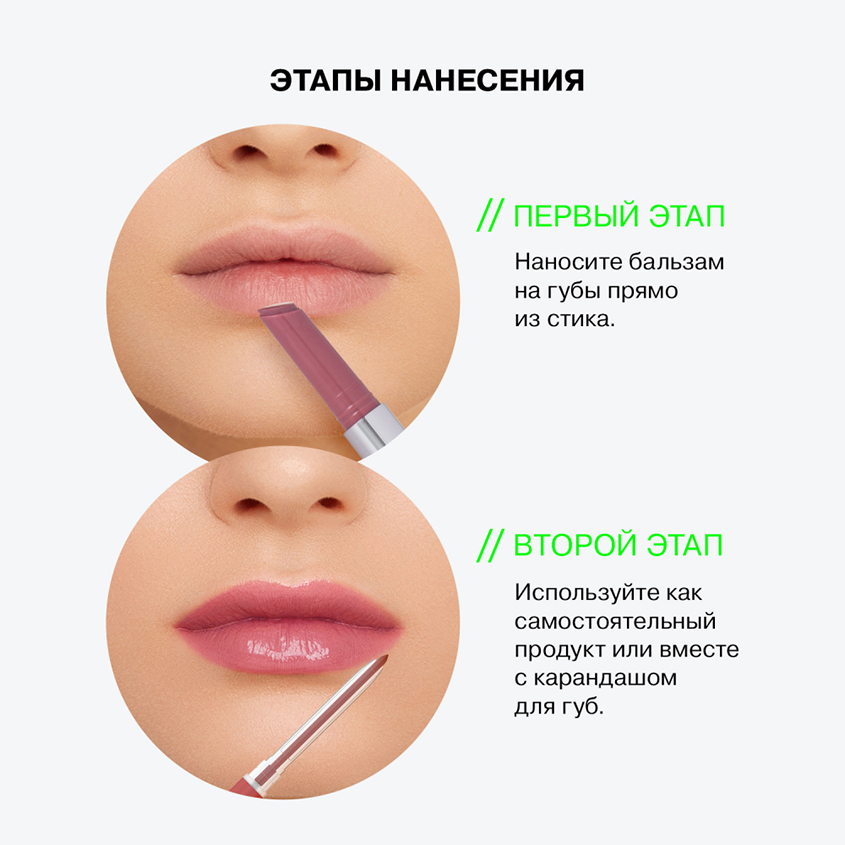 Использовать для смягчения кожи губ и придания легкого оттенка.