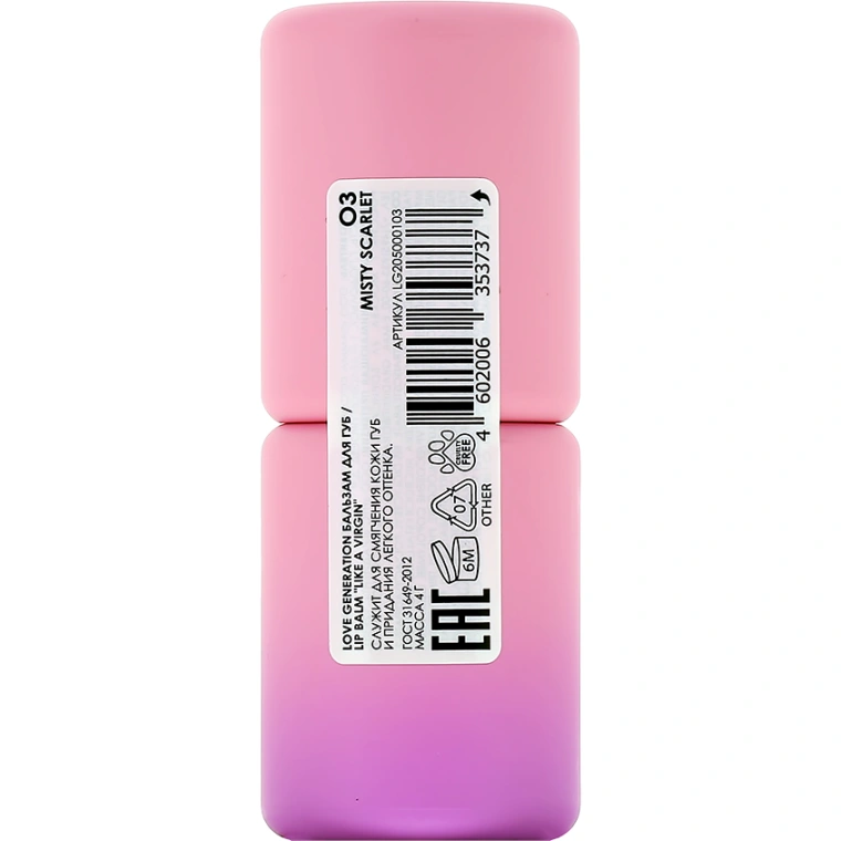 Бальзам для губ `LOVE GENERATION` LIKE A VIRGIN тон 03 Misty scarlet