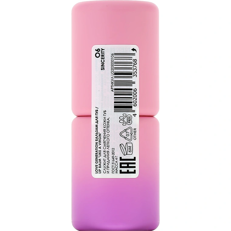 Бальзам для губ `LOVE GENERATION` LIKE A VIRGIN тон 06 Sincerity